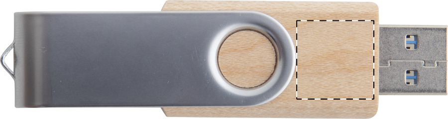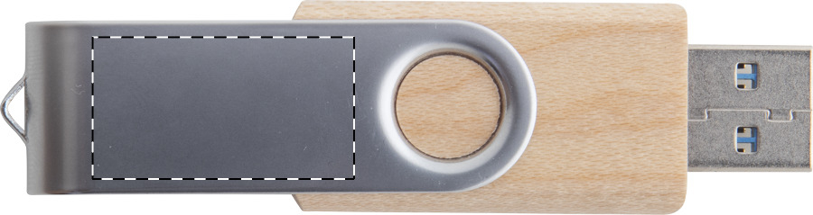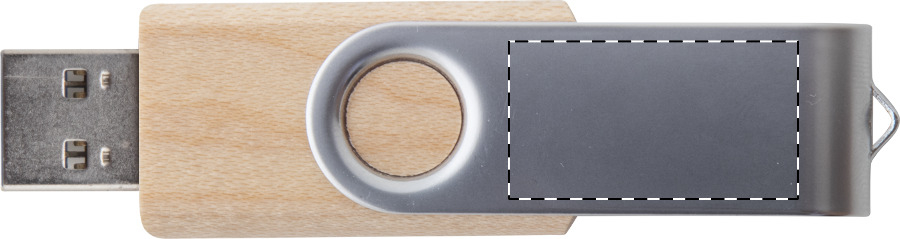 Dreh OTG USB-Stick im Bambusgehäuse mit Metallbügel, 4/8/16/32 GB Speicher, USB und USB-C Steckern, USB 2.0. Einzeln in Kraftpapierbox.