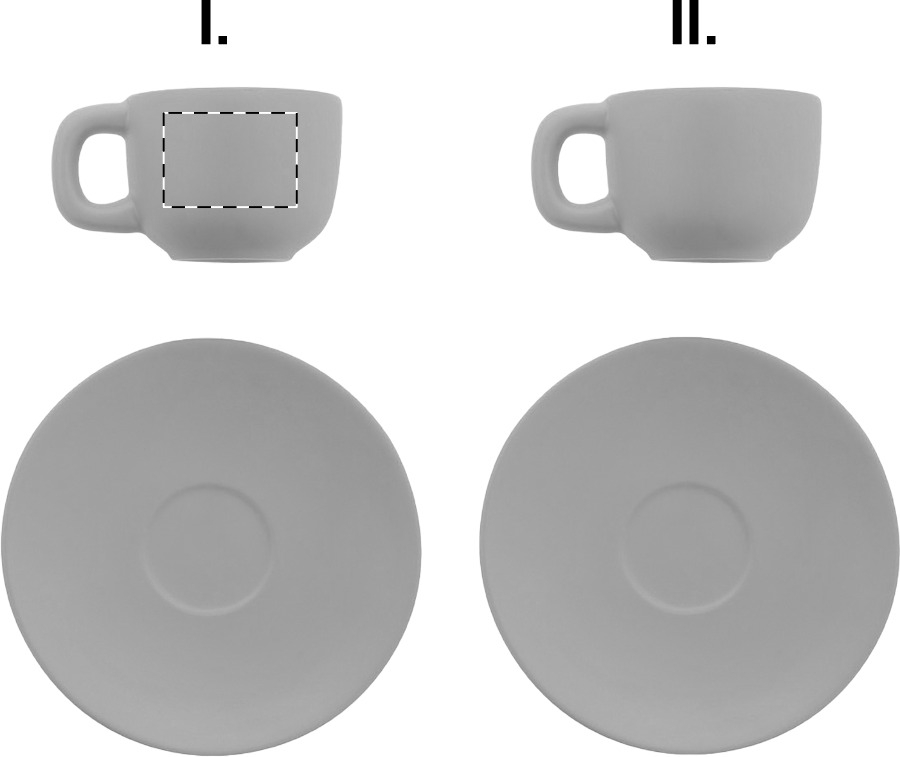 Hochwertiges Espressotassen-Set aus Keramik mit matter Außen- und glänzender Innenseite. Das Set besteht aus aus 2 Tassen (85 ml.) und 2 Untertassen. Verpackt in Kraftpapierbox.