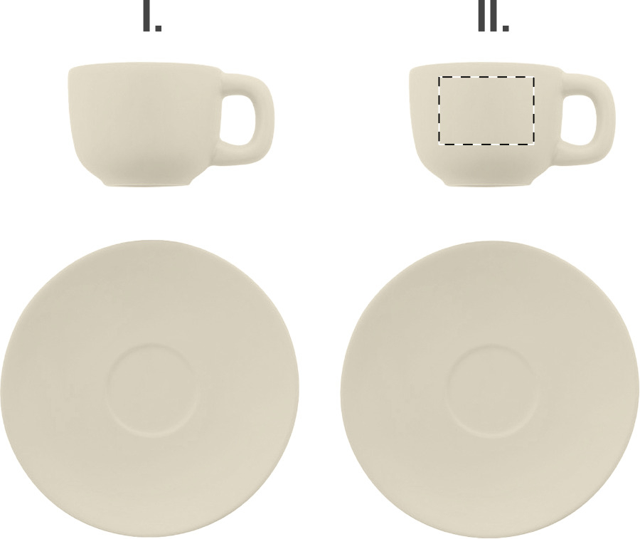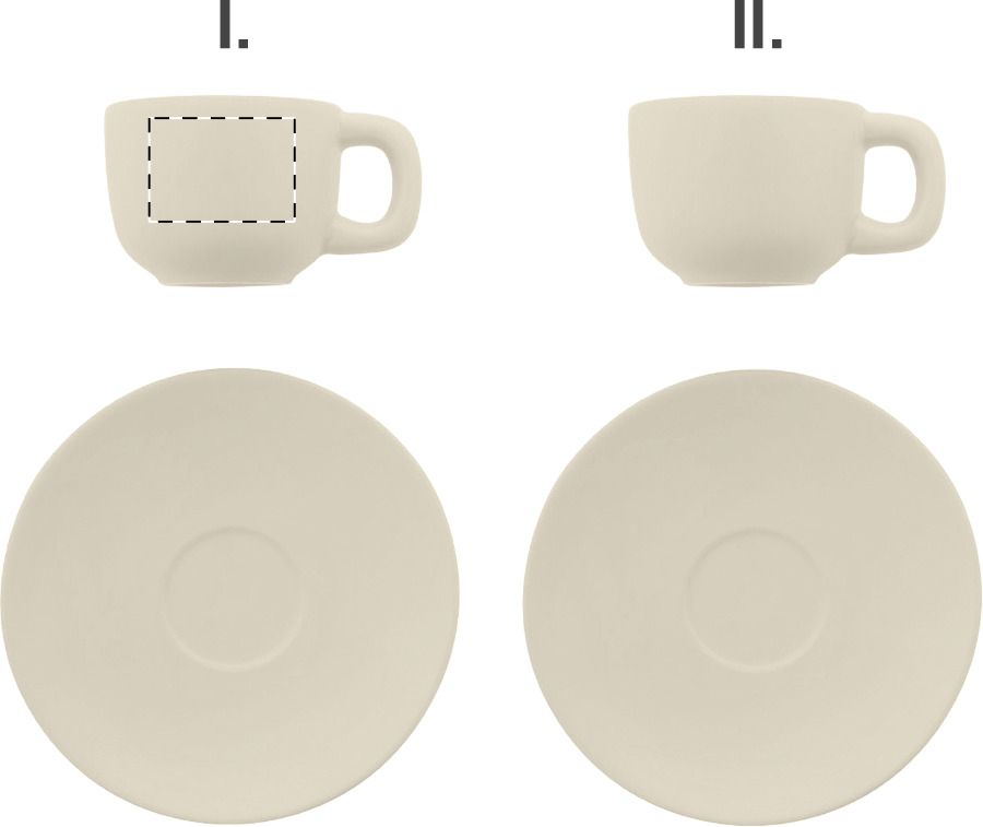 Hochwertiges Espressotassen-Set aus Keramik mit matter Außen- und glänzender Innenseite. Das Set besteht aus aus 2 Tassen (85 ml.) und 2 Untertassen. Verpackt in Kraftpapierbox.
