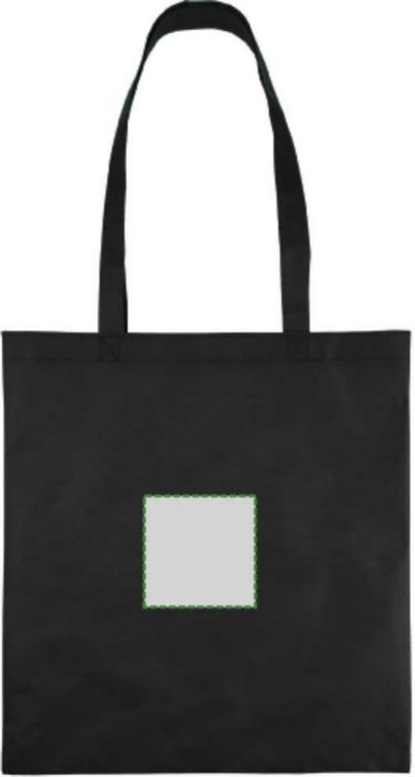 Vliesstoffbeutel aus PP (80 g/m²) mit verschweißten und kreuzgenähten Griffen. Mit einem einzigen großen Fach. Er hat ein Fassungsvermögen von 11 l und eine Tragfähigkeit von 7 kg.